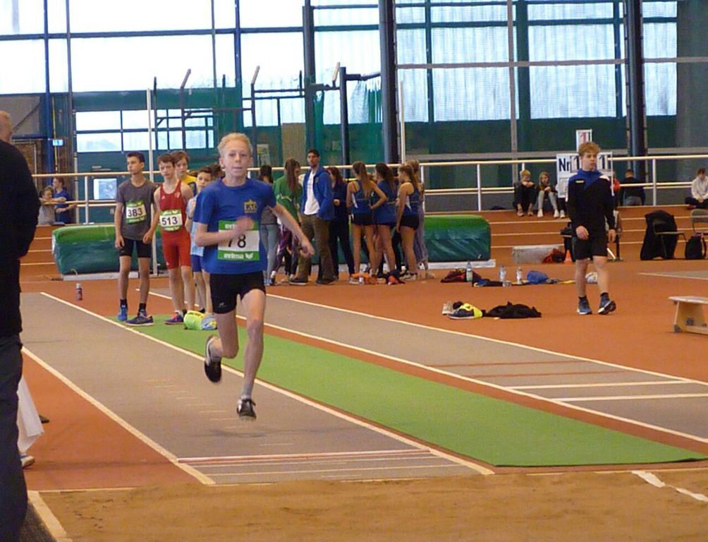 Valentin läuft die 60m in 7,31s im Vorlauf, wird in seinem Lauf Zweiter und verpasst ganz knapp die Finals trotz toller Zeit!