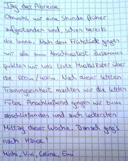 Am letzten Tag fand noch ein Trainingswettkampf statt, bevor gegen 13 Uhr der Bus den SV Flatow wieder nach Hause brachte.